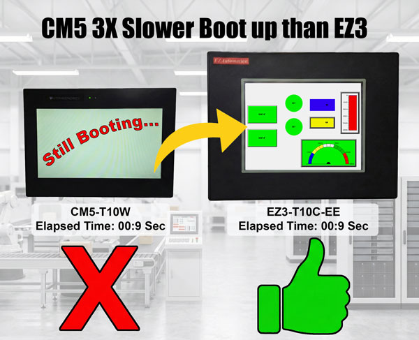 • CM5 is not an appropriate drop-in replacement and is really made in China and transshipped to Japan. It's boot up time is 3x slower than EA9 or EZ3 and many customers complain about its limited memory.
