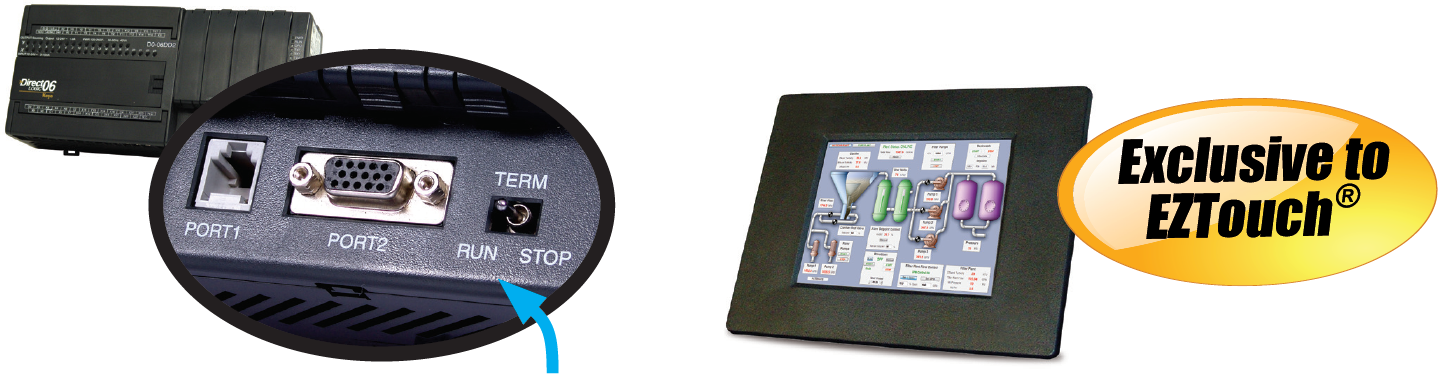 All EZTouch HMIs now have the capability to simultaneously talk to two PLC networks. For example, Ethernet I/P on one side and Modbus RTU on the other side. Tags are automatically converted. This allows the two networks to communicate to each other through EZTouch.