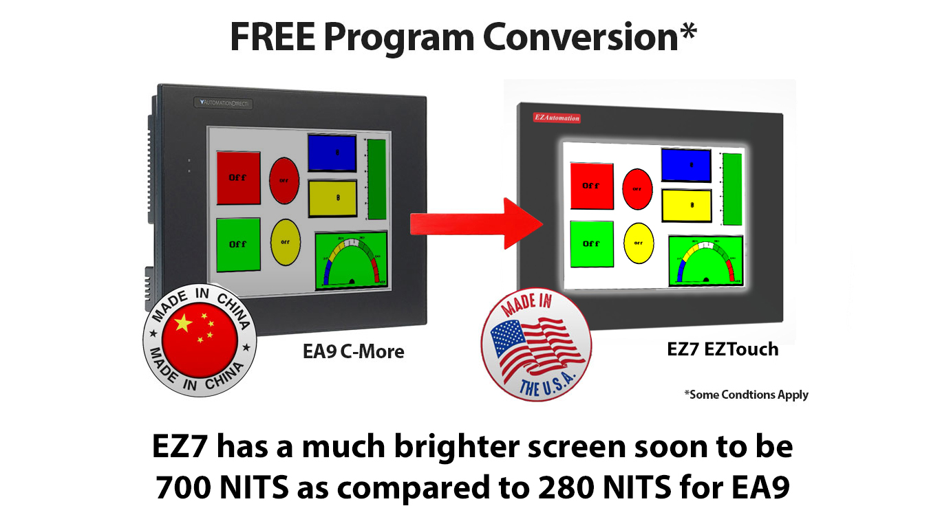 Front with display and touch screen can be hot swapped in less than 2 min and requires no change, no wiring or programming. Minimizing downtime, also can be mounted on a pendant 20ft away.